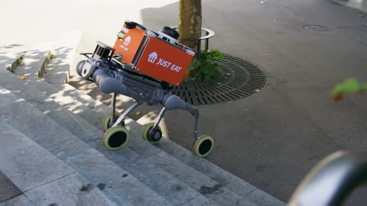 Legged quadrupeds on wheels are becoming a much more common sight. There’s companies like Pudu Robotics and RIVR (Swiss successor to Anymal) who use them for deliveries.